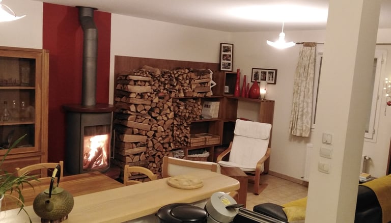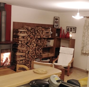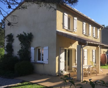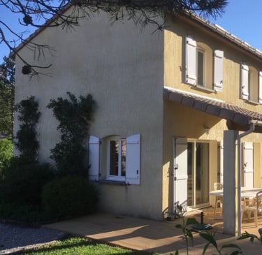 car chambre lit 160cms en RdC + Salle de Bain avec douche à l'Italienne + WC + Cuisine / Séjour + Accès terrasse et parking