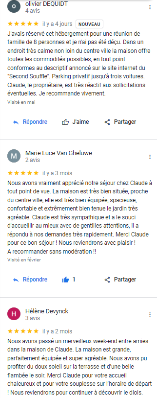 CE QU'ILS DISENT DE LEUR SEJOUR : Les derniers avis des locataires du SECOND SOUFFLE